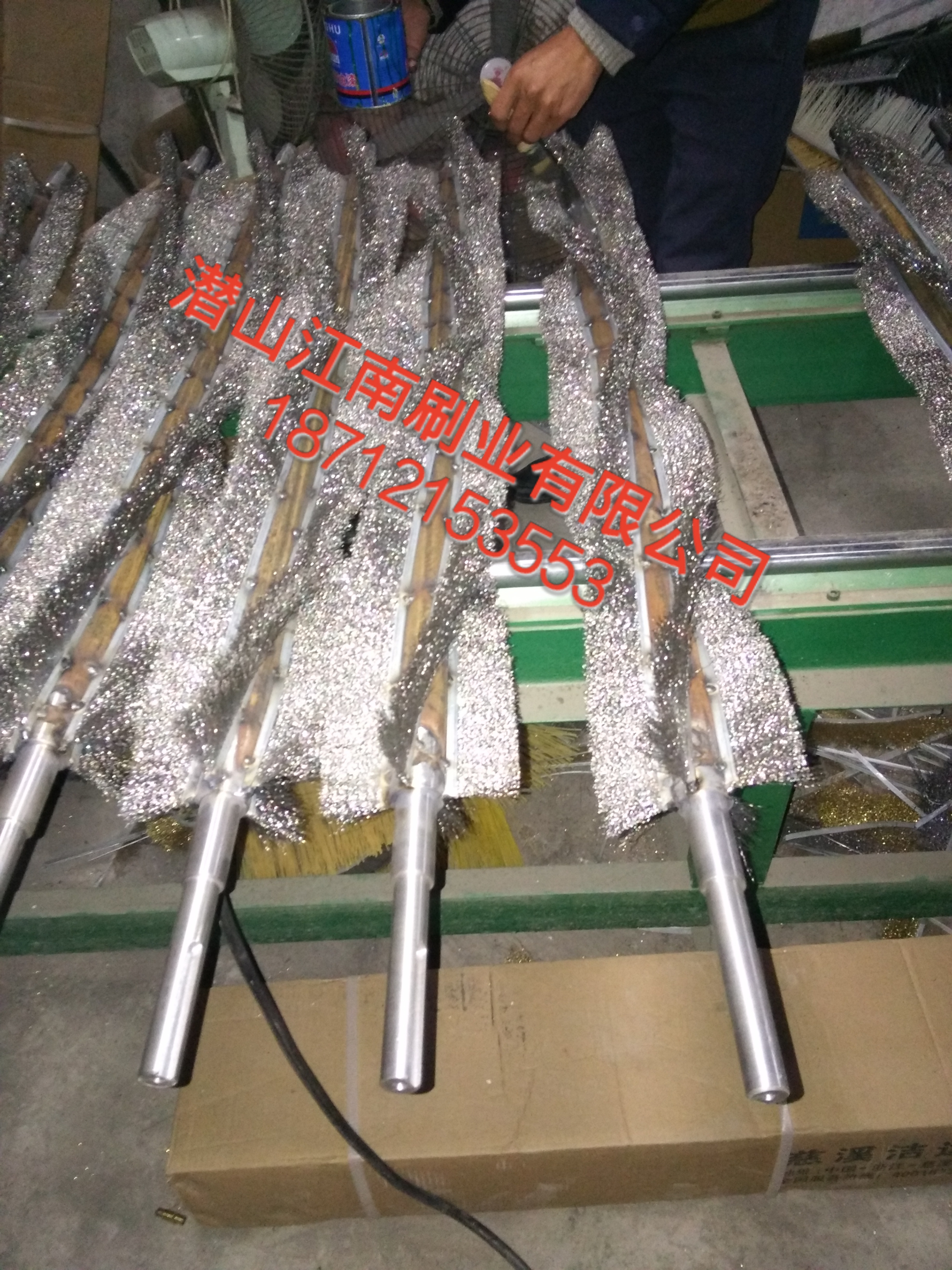 為解決水泥廠熟料輸送帶溫度高,一般普通尼龍毛刷輥刷毛容易燙壞,使用壽命短,潛山江南刷業(yè)有限公司設(shè)計(jì)一種;采用全鋁殼電機(jī)、減速機(jī),刷毛采用0.15mm不銹鋼絲,滾體采用碳鋼特制而成,不拍溫度高,徹底解決水泥廠輸送帶高溫問題,刷毛更耐磨,耐高溫,不損傷皮帶,正常使用壽命一年以上,可更換,該產(chǎn)品以后的使用成本僅為更換刷毛的費(fèi)用,輥體可以重復(fù)利用,極大節(jié)約使用成本。針輪及渦輪型,旋轉(zhuǎn)刷式清掃器能有效的清掃滾筒表面和輸送帶底面粘附物,由電動(dòng)機(jī)驅(qū)動(dòng)圓柱型鋼刷,刷尖與帶面輕微接觸,鋼刷的旋轉(zhuǎn)方向與回程輸送帶的運(yùn)行方向相反,從而將粘在帶面上的微粒料刷下,達(dá)到徹底清潔的目的。