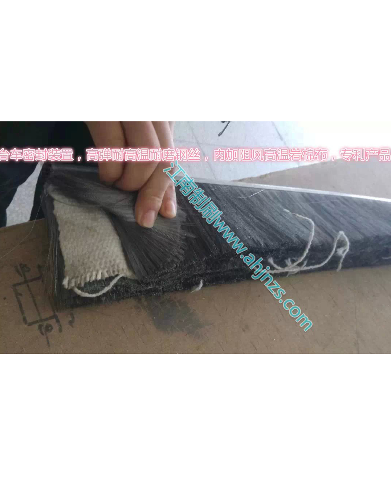 二:帶冷機工作原理和環(huán)冷機有一定的區(qū)別,密封采用0.15mm鋼絲,但是只有鋼絲的情況下密封效果不是太理想,潛山縣江南制刷廠研發(fā)的帶冷機密封鋼刷,采用雙重密封效果,鋼刷柔性密封加耐高溫阻風布,使用效果更上一層樓,及防止鋼刷鋼絲脫落,而且增加阻風效果60%以上,阻風布能耐1200度高溫,雙重密封更保險。