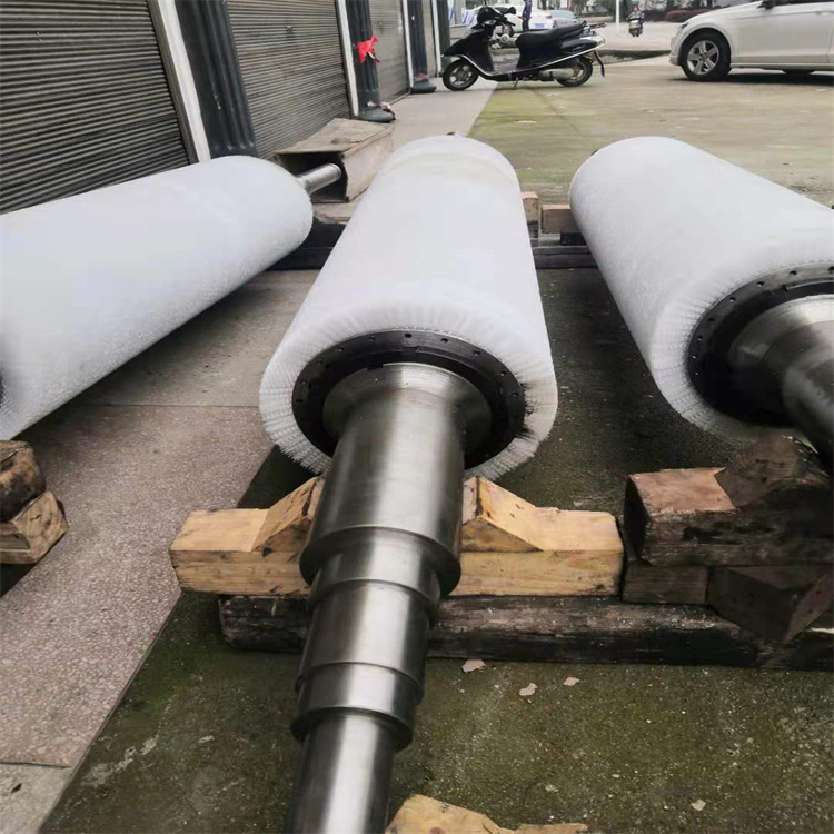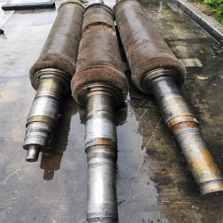 ( 2) 熱軋機消棍刷: 熱軋機清棍刷的目的 是將熱軋時粘在軋 棍輾 體表面的鋁粉等污物去除,傳統(tǒng)工藝采用鋼絲刷。由于鋼絲脆性容易斷絲.在軋 棍表面容易產(chǎn)生劃傷。目前雖有效的還是內(nèi)噴式磨